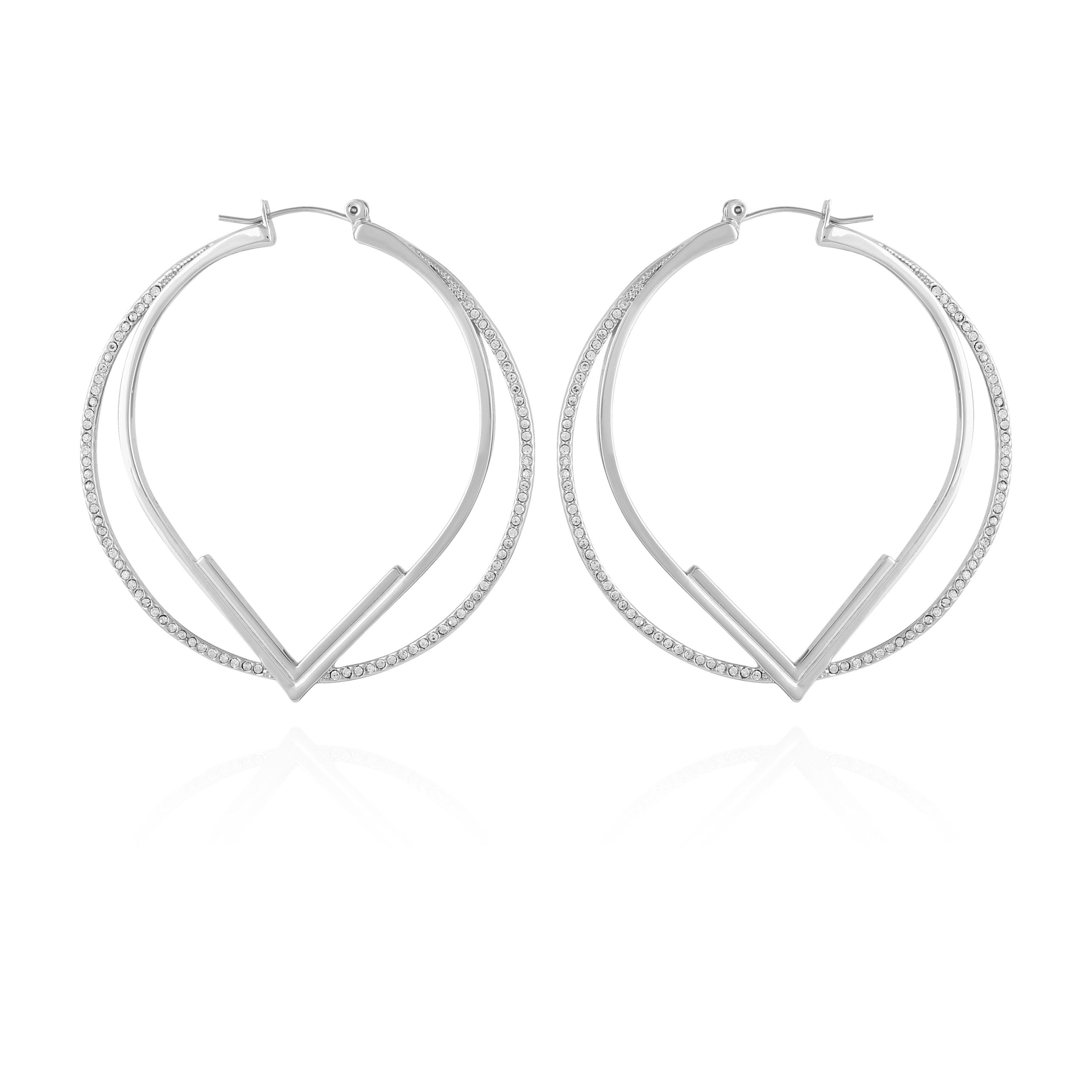 Double Hoop V Pave Earrings