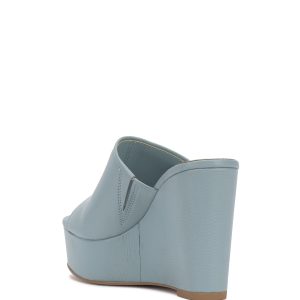 The Etta takes a nod to nostalgic appeal with its single banded leather upper and towering wedge heel. Form-fitting maxi dresses or straight leg jeans effortlessly complement this Y2K-inspired pair.
