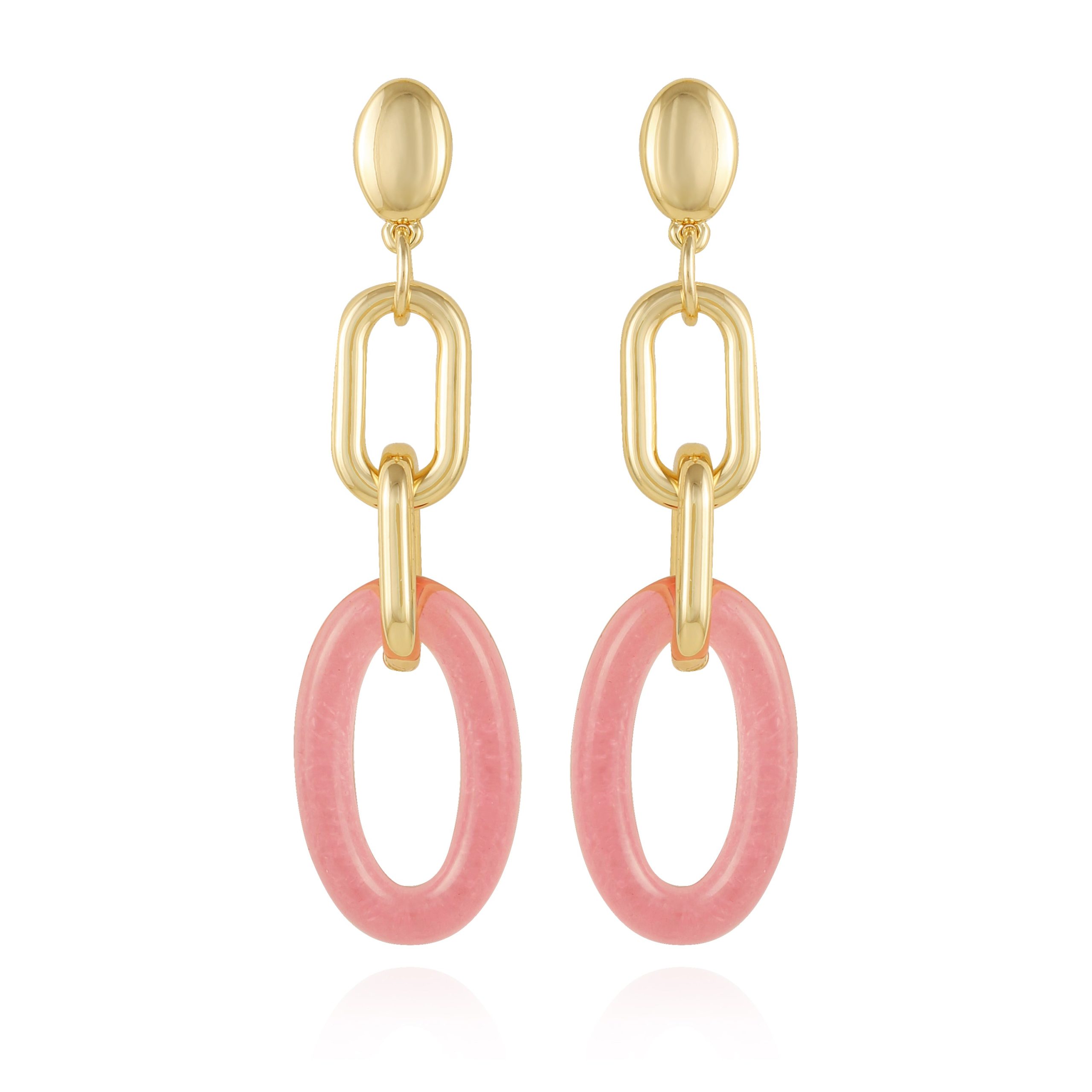 Be the first to review “Goldtone Pink Candy Interlocking Drop Earrings” Cancel reply