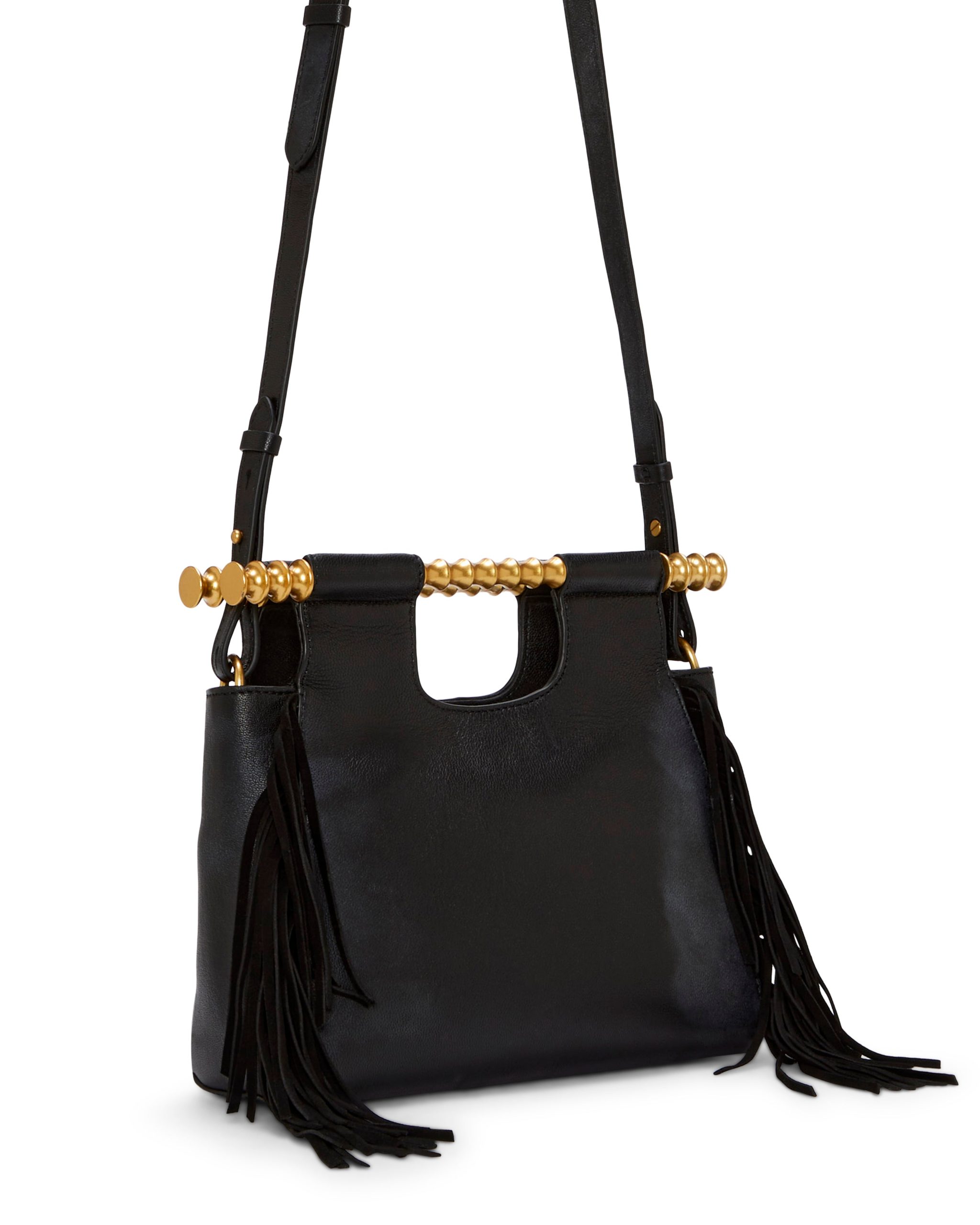 The Noemy crossbody bag flaunts unique appeal with its textured top handles and suede tassel accents. The removable shoulder strap allows you to rock as a clutch!